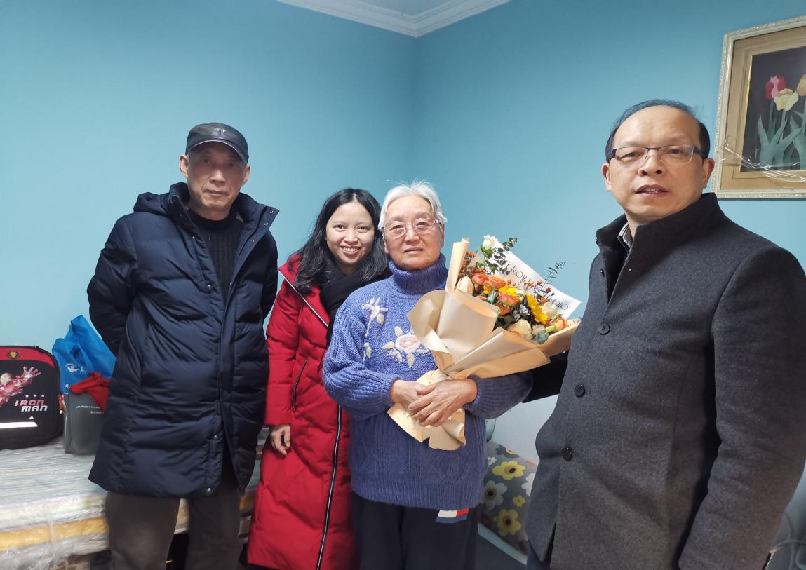 1月11日,院长罗剑波、副院长吴剑锋、副书记袁莉莉、退管分会负责人沈国华先后来到蒋玉兰、叶盼云、朱一飞、仲梅芳、王国安、杜佩秋等老师家中进行探望慰问。