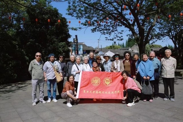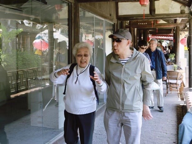 2024年5月16日,风和日丽,生机盎然,学院退管会联合退休党支部、退教协组织17位退休教师参观上海市金山区花开海上生态园和枫泾古镇两地,实践队伍由学院退管分会会长沈国华、退管小组长顾爱民带队。此行的老师们中,有学院最年长、91岁高龄的仲梅芳老师,还有80多岁高龄的廖光霞老师、祝蓉老师、秦湘老师。四位长者在同行老师们的悉心关照下,兴致勃勃地参加活动。