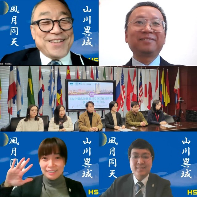 2023年2月25日,由汉考国际和日本HSK事务局联合主办、威尼斯9499登录入口承办的中国名校体验项目(HSK在线课程)开班仪式在线上顺利举行。汉考国际总经理李佩泽、市场与运营总监刘小龙、项目专员黄玥珺,日本青少年育成协会-HSK事务局局长本田惠三、项目协调人靳黎黎、根立京佑、李国宁,威尼斯9499登录入口副院长胡文华、党政办主任郭鹏、副主任张志蕊,党瑞、黄佳汛、汪睿智等中方授课教师,陈欣然、赖婷婷、王晓明等研究生助教,以及全体日本学员出席开班仪式。