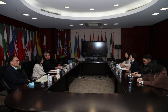 王颖首先表达了对纪先生一行的热烈欢迎,并简要介绍了学院的历史、教学特色、教学成果以及未来的发展方向。张志蕊主要介绍了学院非学历的各个项目。
